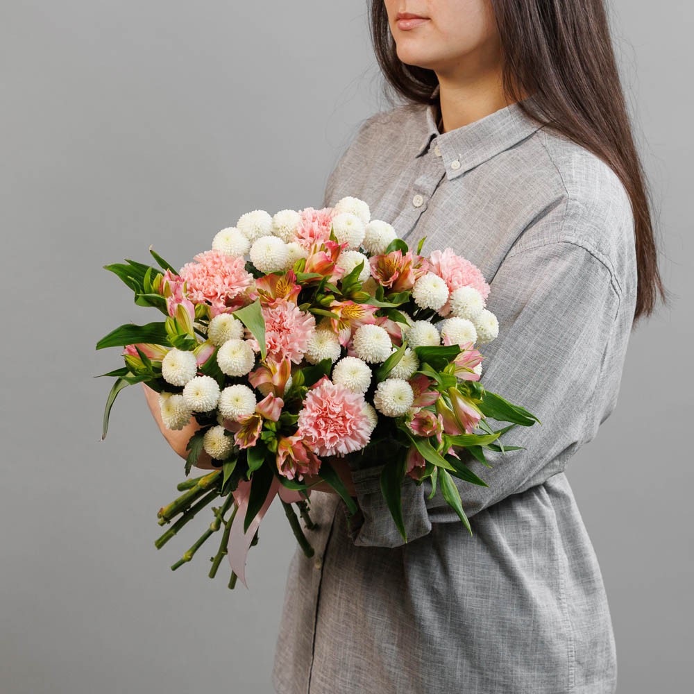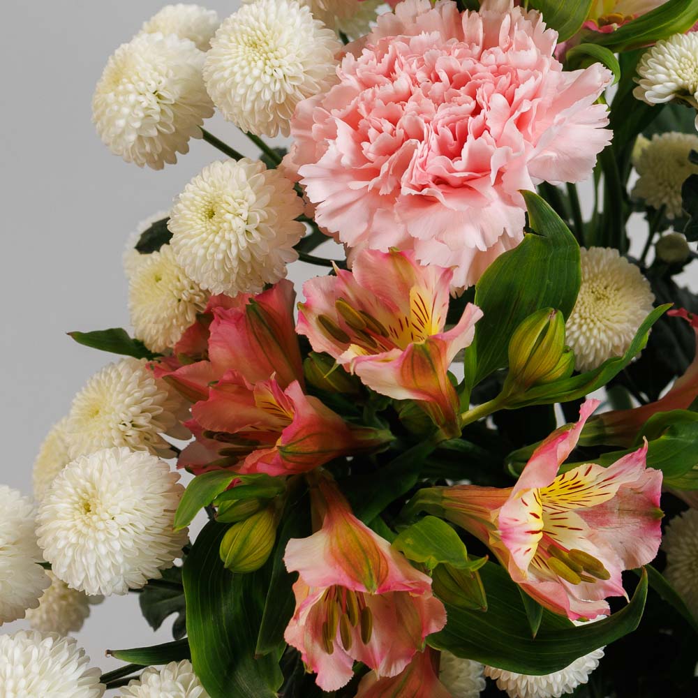 • Состав: Альстромерия, хризантема, гвоздика
