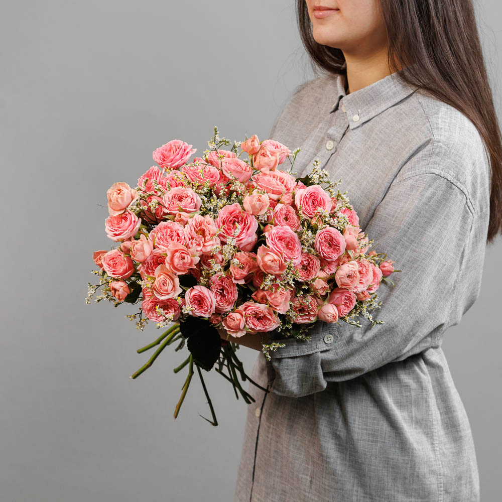 Каждый букет собирается индивидуально после Вашего заказа. Цветовая гамма букета может незначительно отличаться от представленной на фото.  Все изменения согласовываются с заказчиком до момента сборки букета.