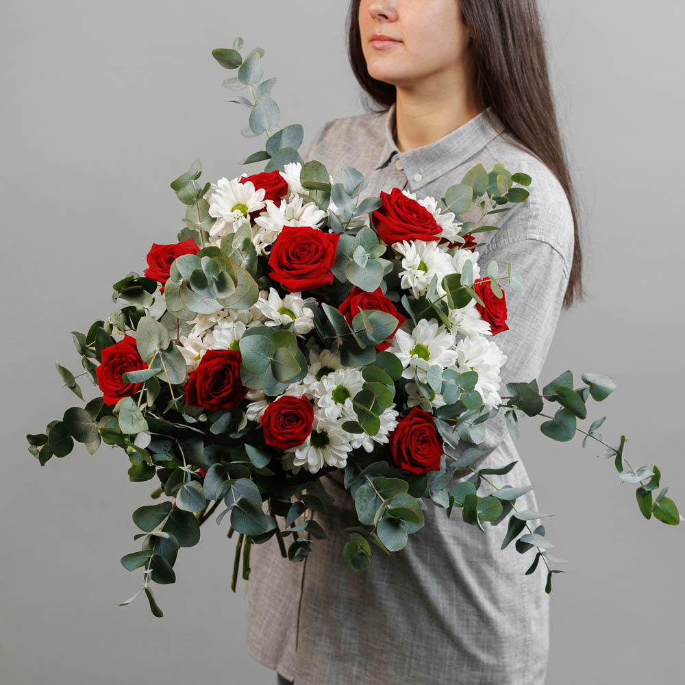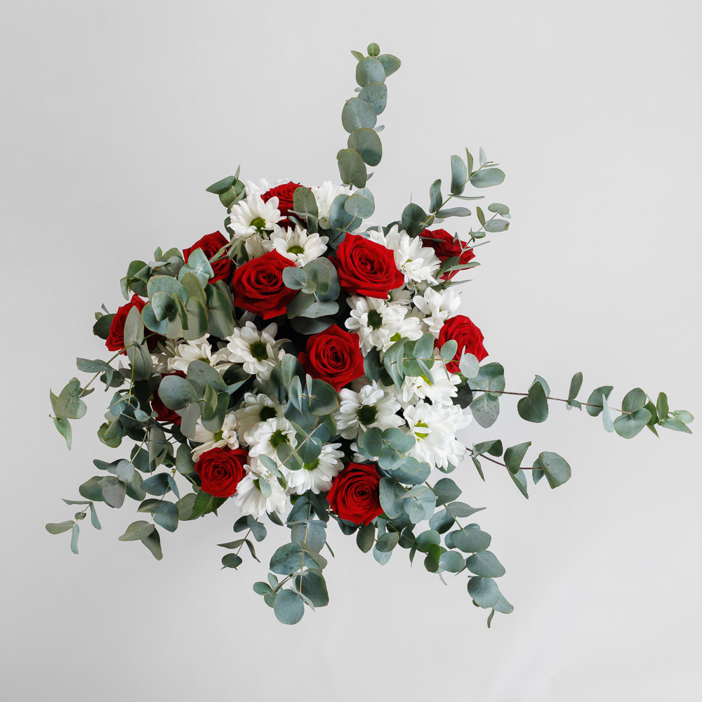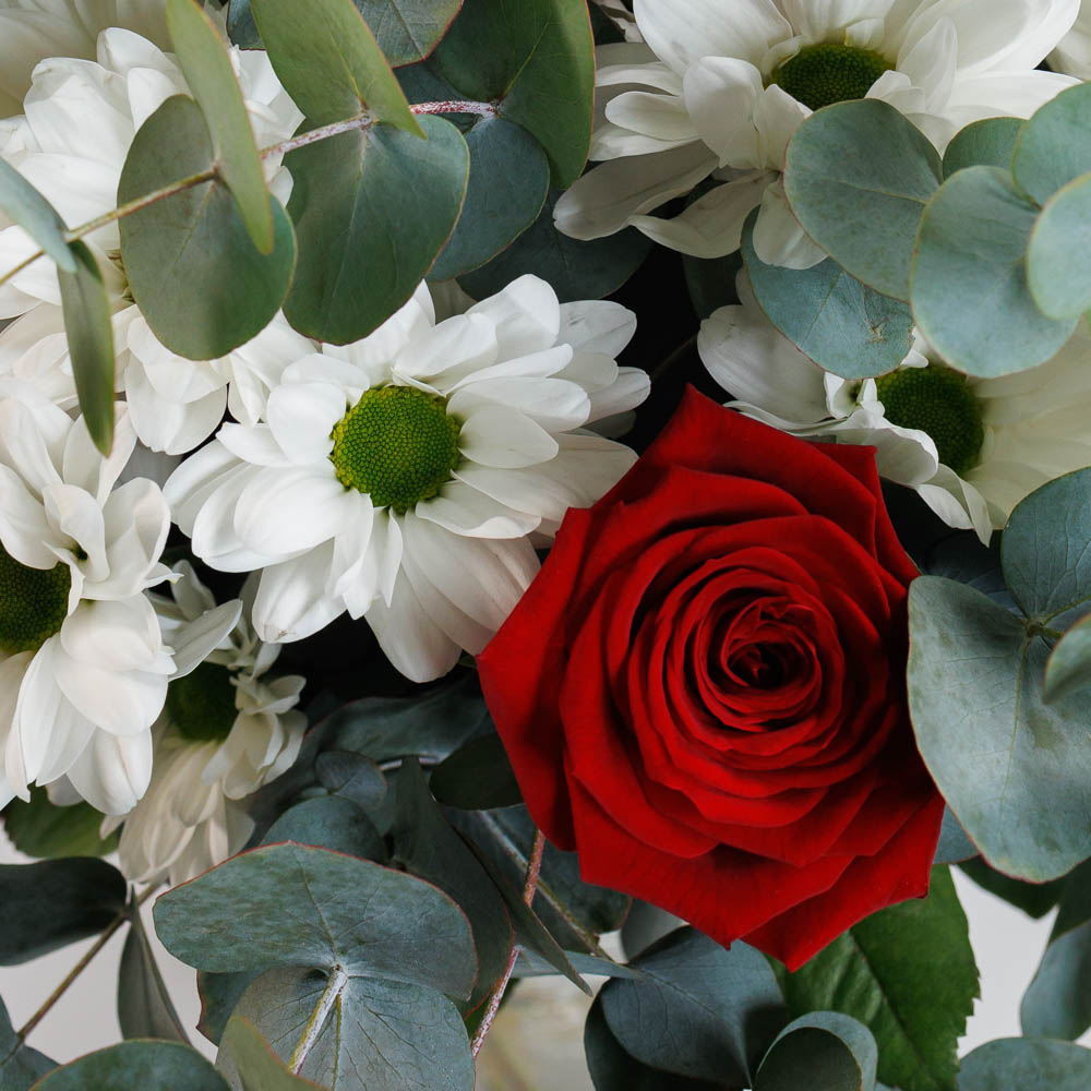 • Состав: Роза одноголовая, хризантема, эвкалипт