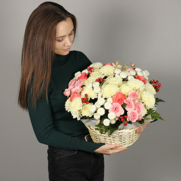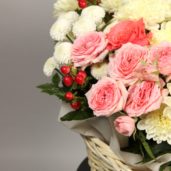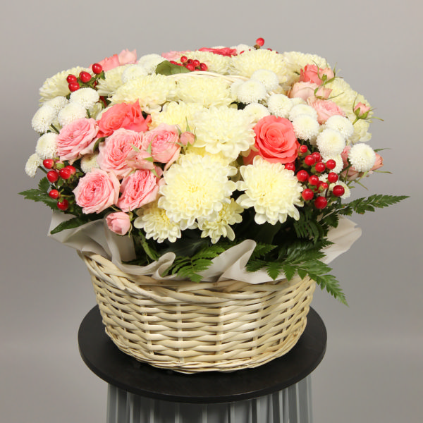 • Состав: Хризантема, роза кустовая, гиперикум, папоротник