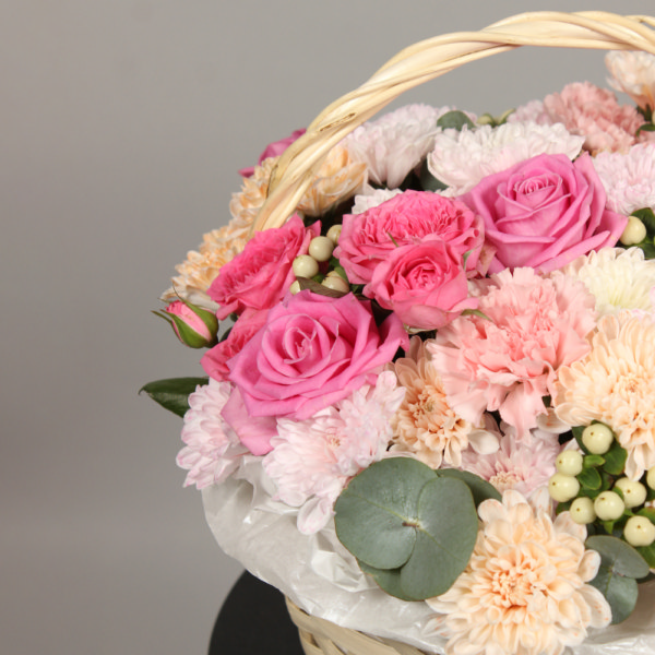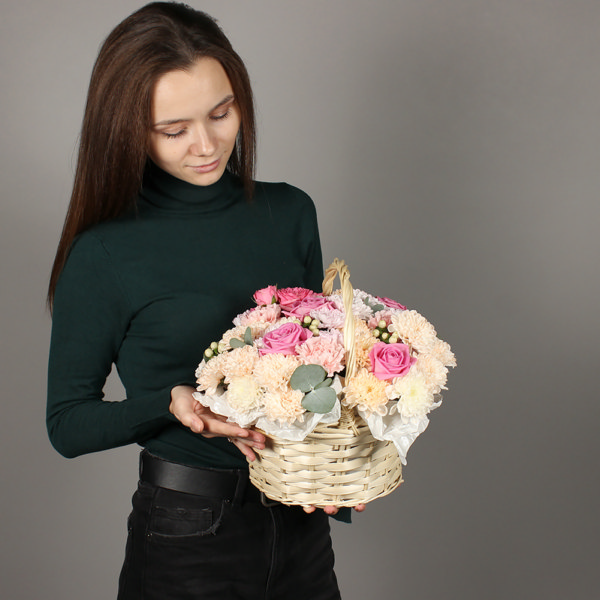 • Упаковка: Корзина из ивы, пленка, тишью, лента