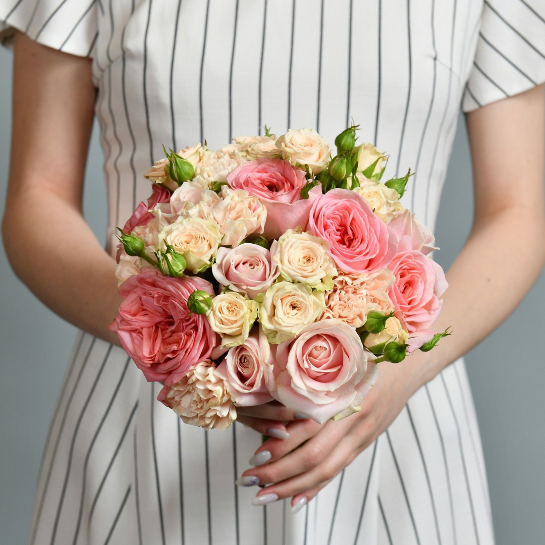 Состав: роза кустовая 5 шт, гвоздика одноголовая 7 шт, роза одноголовая 11 шт.