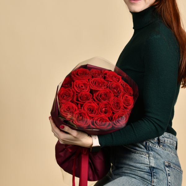 • Состав: Роза одноголовая 19 шт. Цвет на выбор