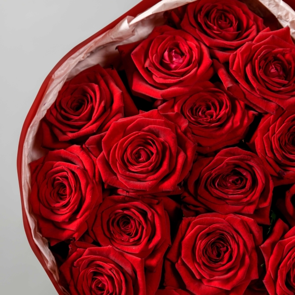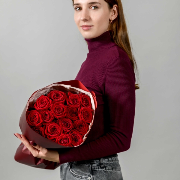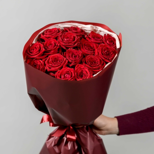 Элегантный букет из роз  в оттенках бордо станет прекрасным выражением чувств, покорив своим стилем и лаконичностью.