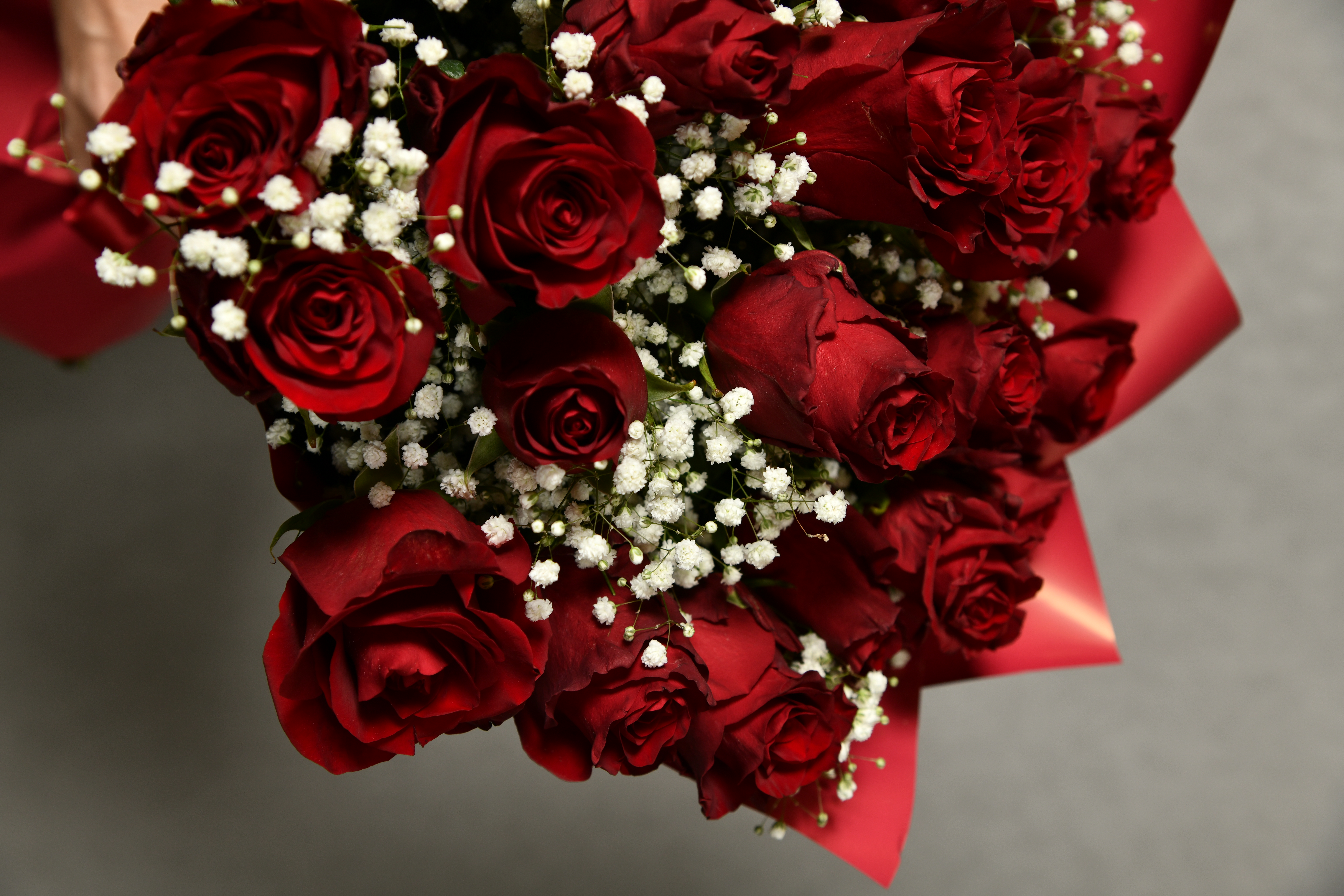 Классическое сочетание красного и белого. Страсть и нежность. Повод для цветов придумать очень легко.
