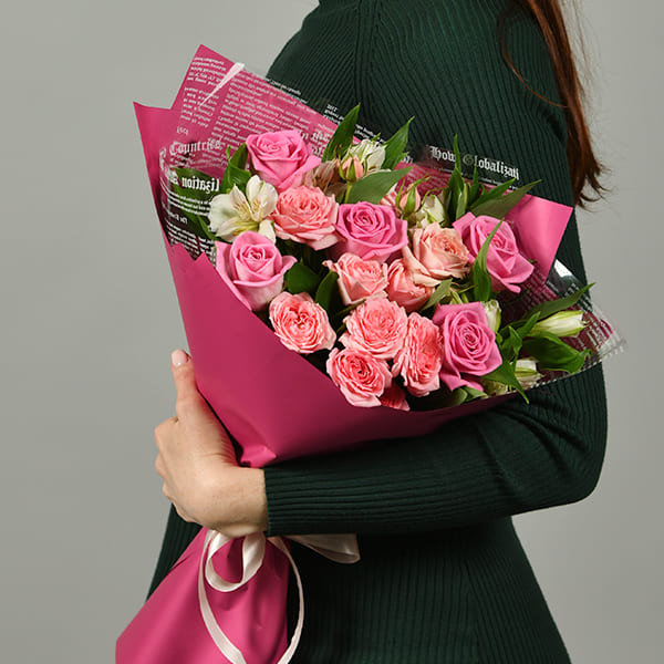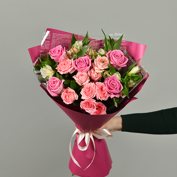 Букет из розовых роз — это изысканная композиция, символизирующая нежность, романтику и восхищение. Розовые розы часто ассоциируются с благодарностью и признательностью, делая их идеальным выбором для выражения тёплых чувств.