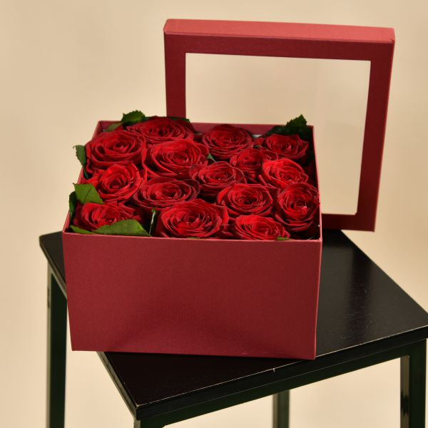 Роза оттенка бордо в оригинальной подаче для самых ярких дам.