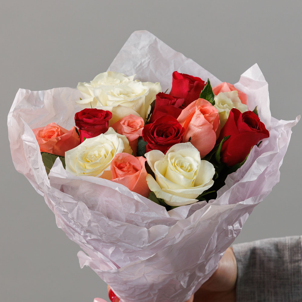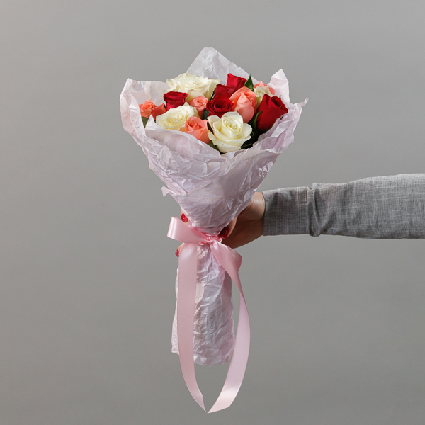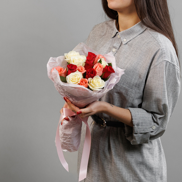 Каждый букет собирается индивидуально после Вашего заказа. Цветовая гамма букета может незначительно отличаться от представленной на фото. Цвет упаковки Вы можете изменить на свой вкус. Все изменения согласовываются с заказчиком до момента сборки букета.