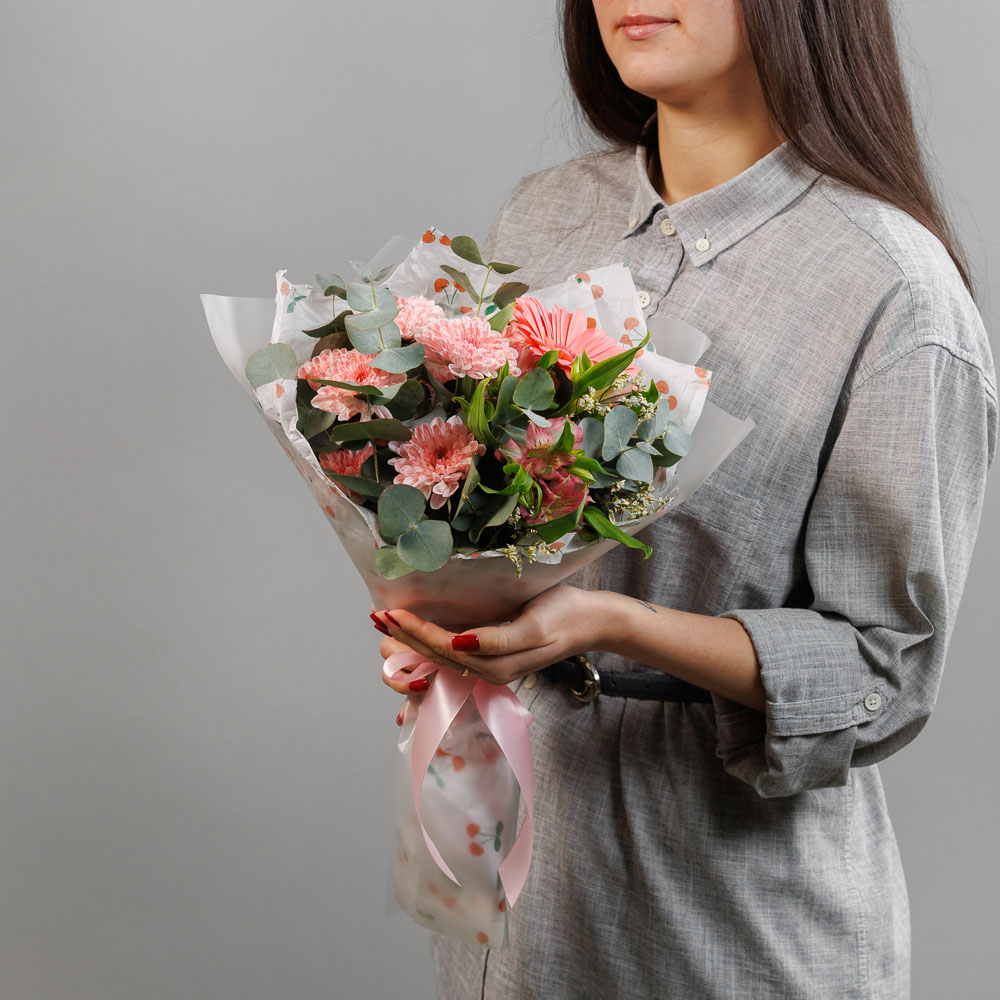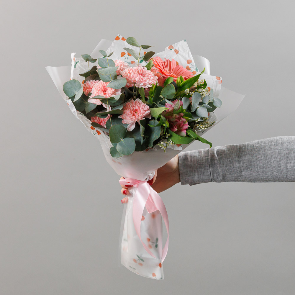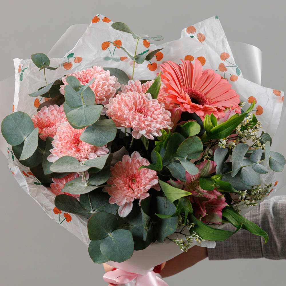 • Состав: Гербера, хризантема, эвкалипт, альстромерия