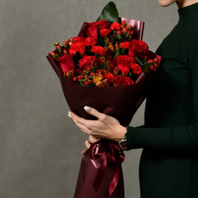 • Состав: Альстромерия, роза, гвоздика, гиперикум