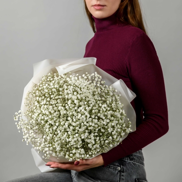 Нежнейшее облако белоснежной гипсофилы порадует получателя не только своей красотой, но и долговечностью. Воздушный, легкий и ароматный букет подарит приятные эмоции по случаю и просто так!