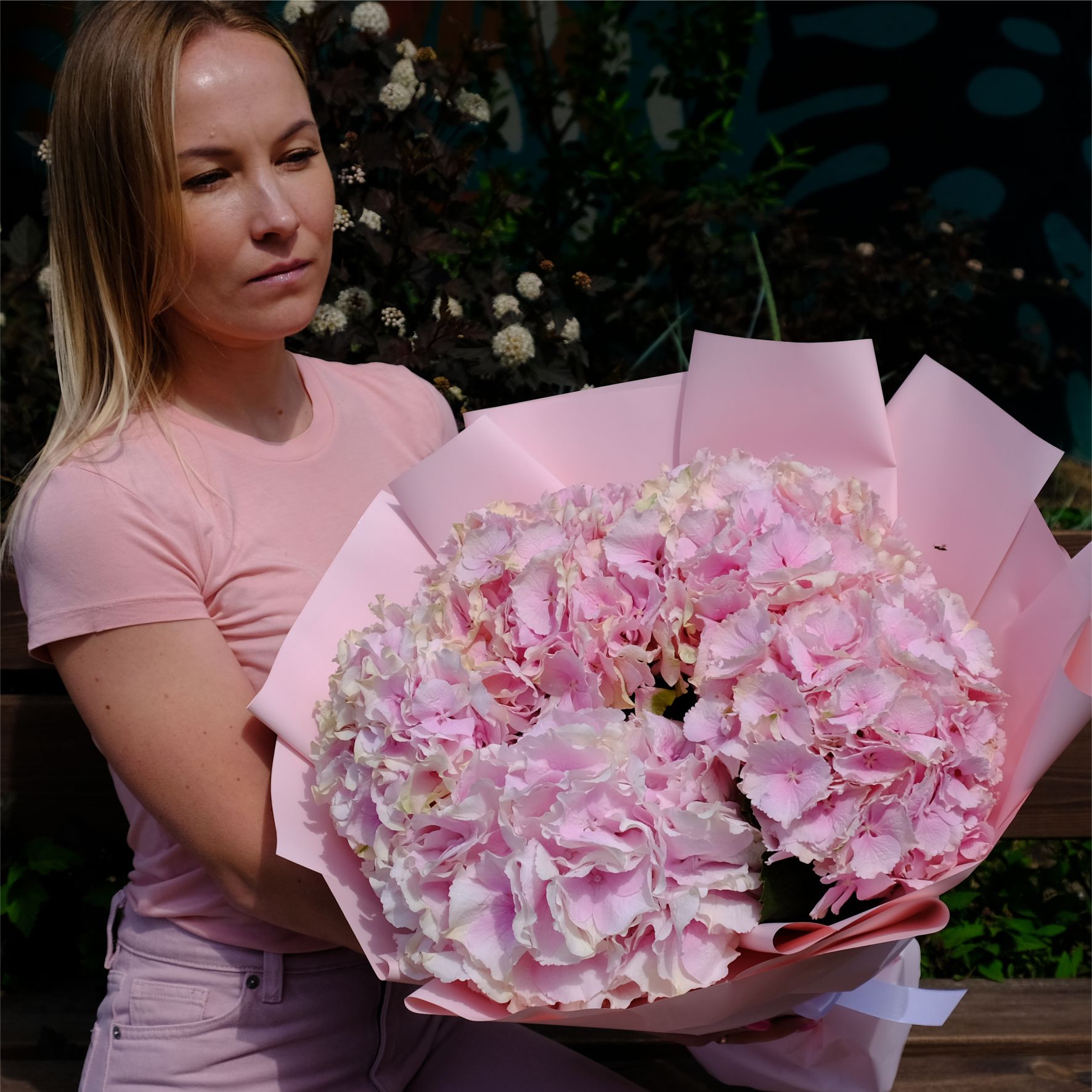 Букет из гортензии украсит собой любой интерьер и будет радовать получательницу.