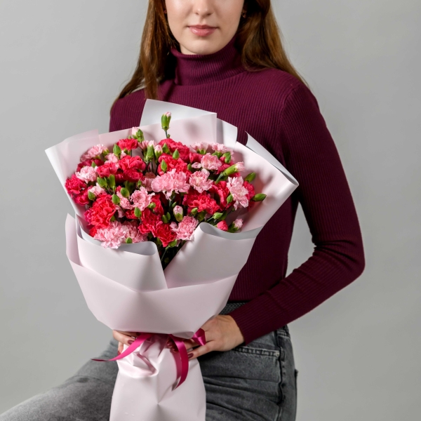 Нежный букет из диантусов станет прекрасным подарком для любой получательницы, наполнив душу теплом и счастьем.