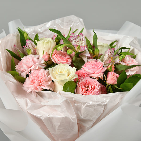 • Состав: Роза, альстромерия, гвоздика