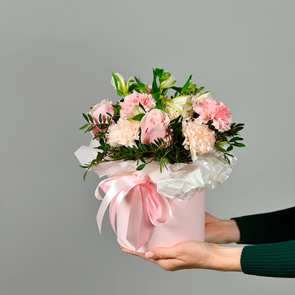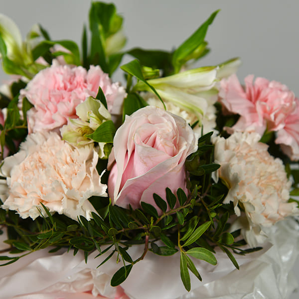 • Состав: Роза, гвоздика, альстромерия, зелень