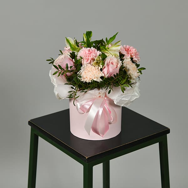 Цветочная композиция в стильной коробке будет приятен абсолюно любой девушке. Радуйте близких.