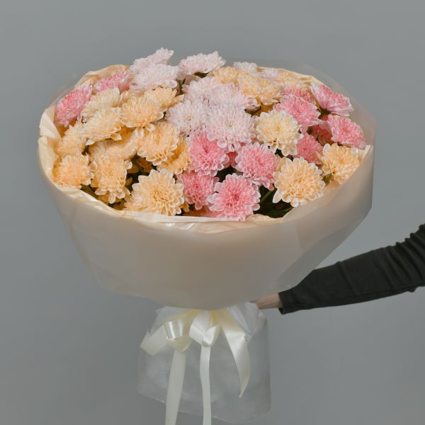• Состав: Хризаентему кустовая 11 шт, тишью, пленка, лента