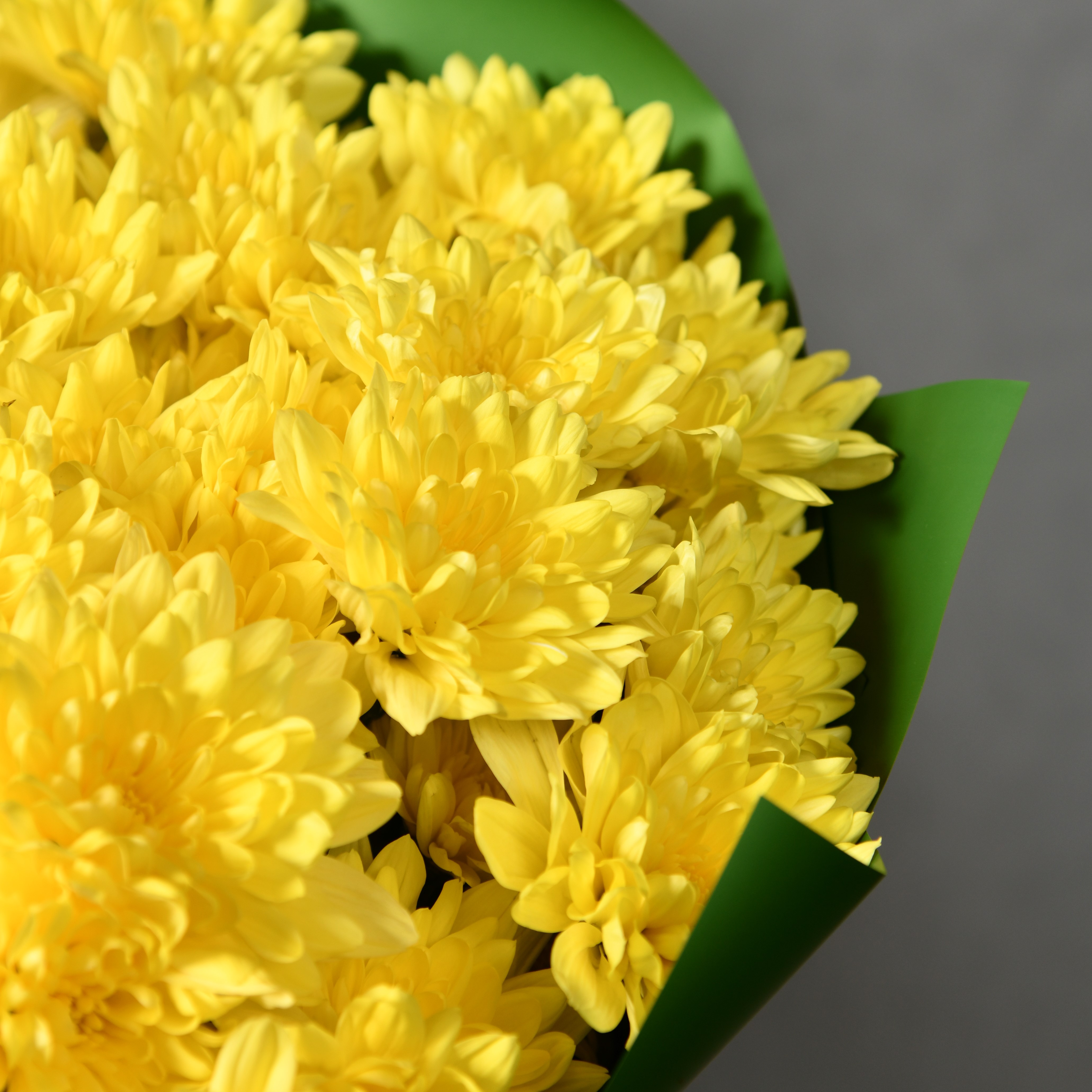 Яркий букет из желтой кустовой хризантемы украсит любой праздник или торжественное событие! Дарите солнечные букеты и прекрасное настроение!