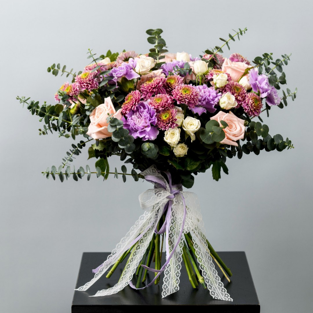 Каждый букет собирается индивидуально после Вашего заказа. Цветовая гамма букета может незначительно отличаться от представленной на фото. Цвет упаковки Вы можете изменить на свой вкус. Все изменения согласовываются с заказчиком до момента сборки букета.