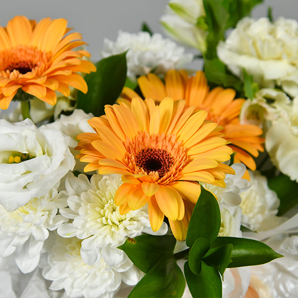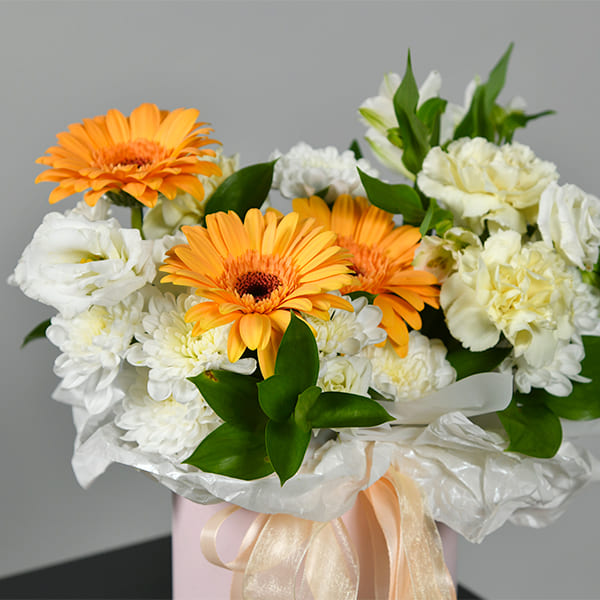 • Состав: Хризантема кустовая, гербера, гвоздика, эустома