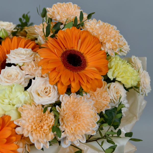 Каждый букет собирается индивидуально после Вашего заказа. Цветовая гамма композиции может незначительно отличаться от представленной на фото. Цвет упаковки Вы можете изменить на свой вкус. Все изменения согласовываются с заказчиком до момента сборки композиции.