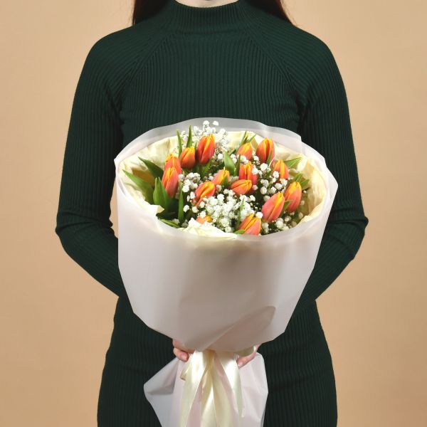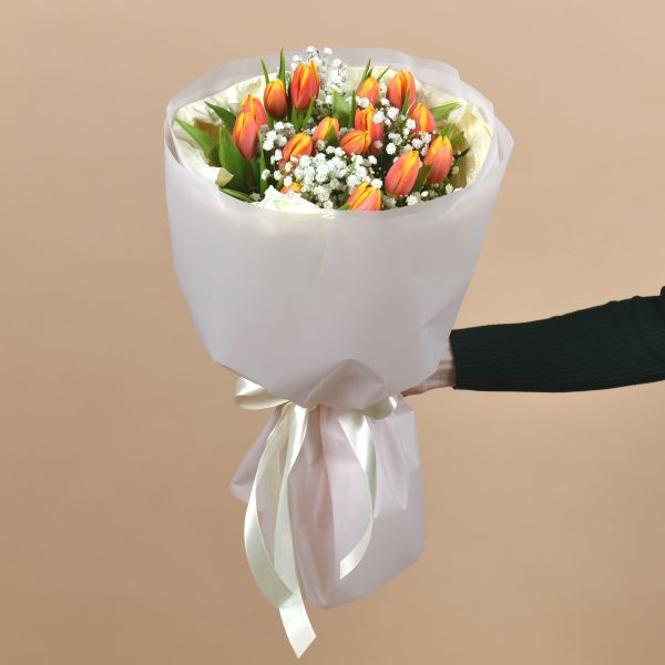 • Состав: тюльпаны 15 шт, гипсофила