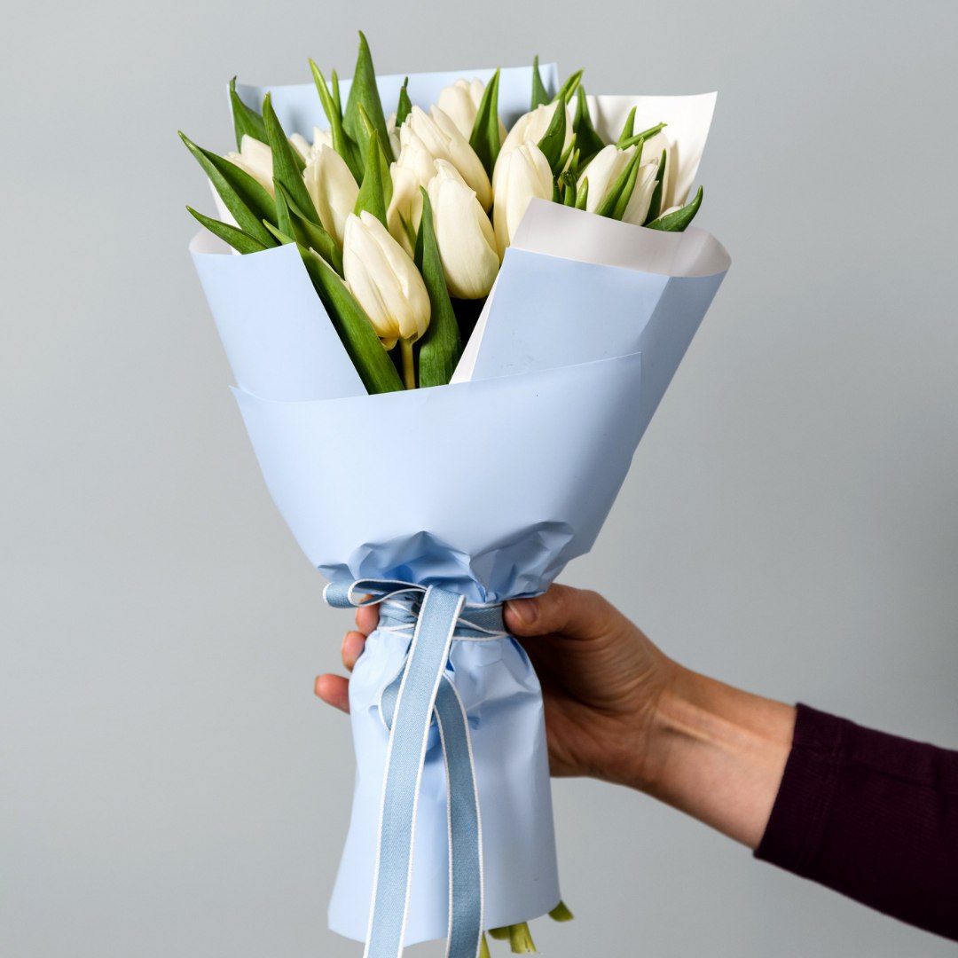 Стильный и милый букет с нежными тюльпанами приятно удивит и порадует получателя.