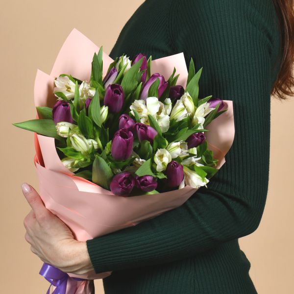 • Состав: тюльпан 15 шт, альстромерии 5 шт.