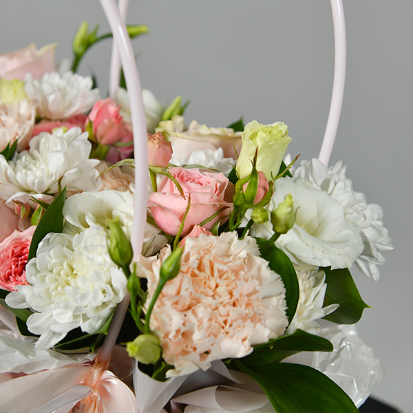 • Состав: Гвоздика, роза, эустома, хризантема, зелень