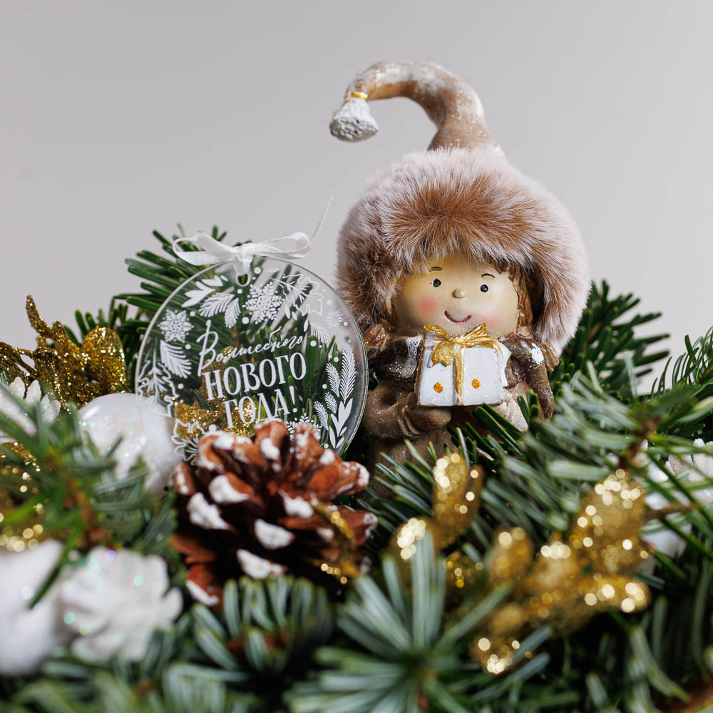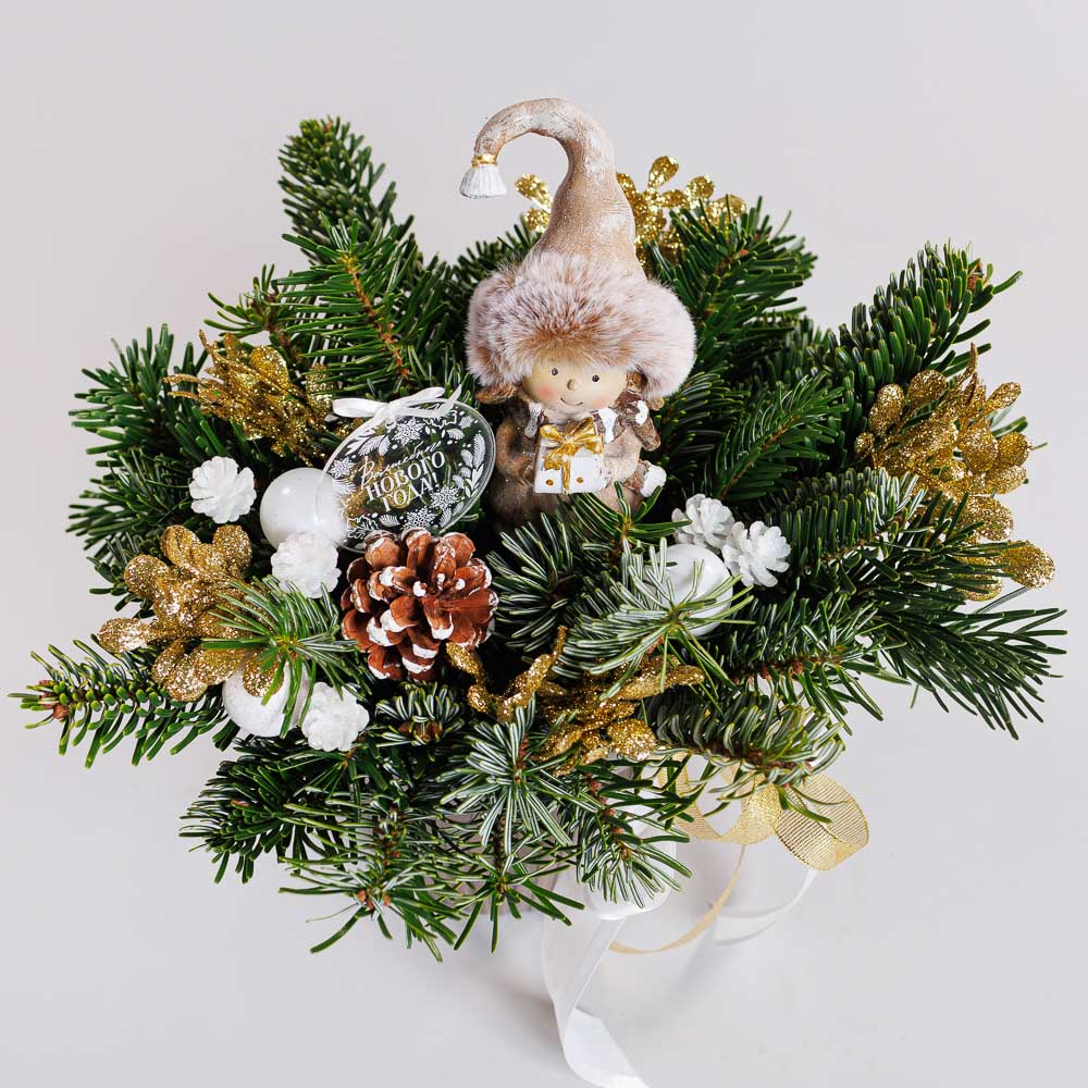 • Состав: Лапник пихты, фигурка гнома, новогодний декор