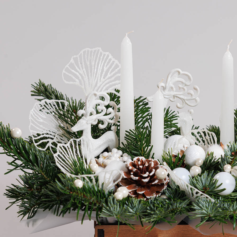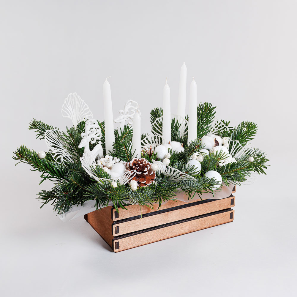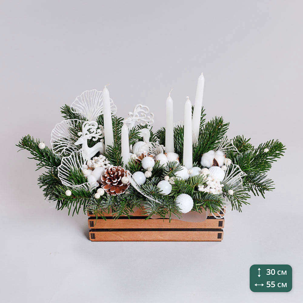 • Состав: Лапник пихты, свечи, новогодний декор