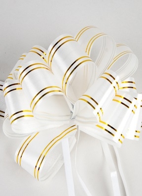 Бант шар 32мм с золотой полосой белый