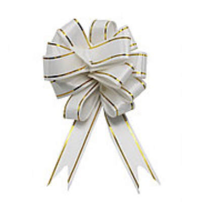 Бант шар 50мм с золотой полосой белый