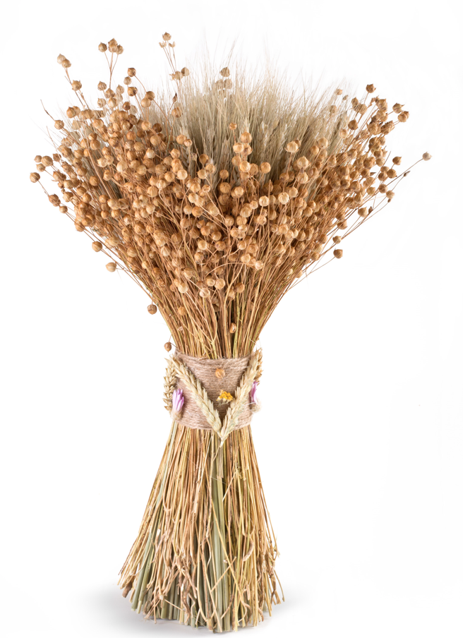 Букет из колосьев и льна сухоцвет, h48см, 260г, натуральный