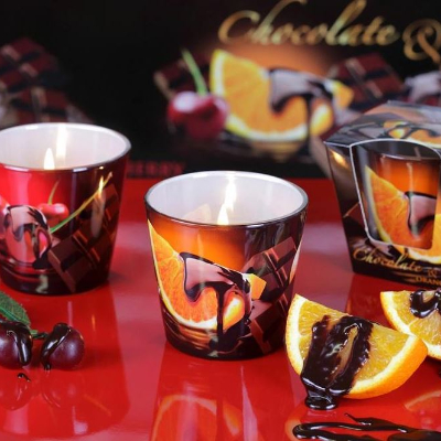 Свеча в стакане Bartek, 115г, аромат Фрукты в шоколаде
