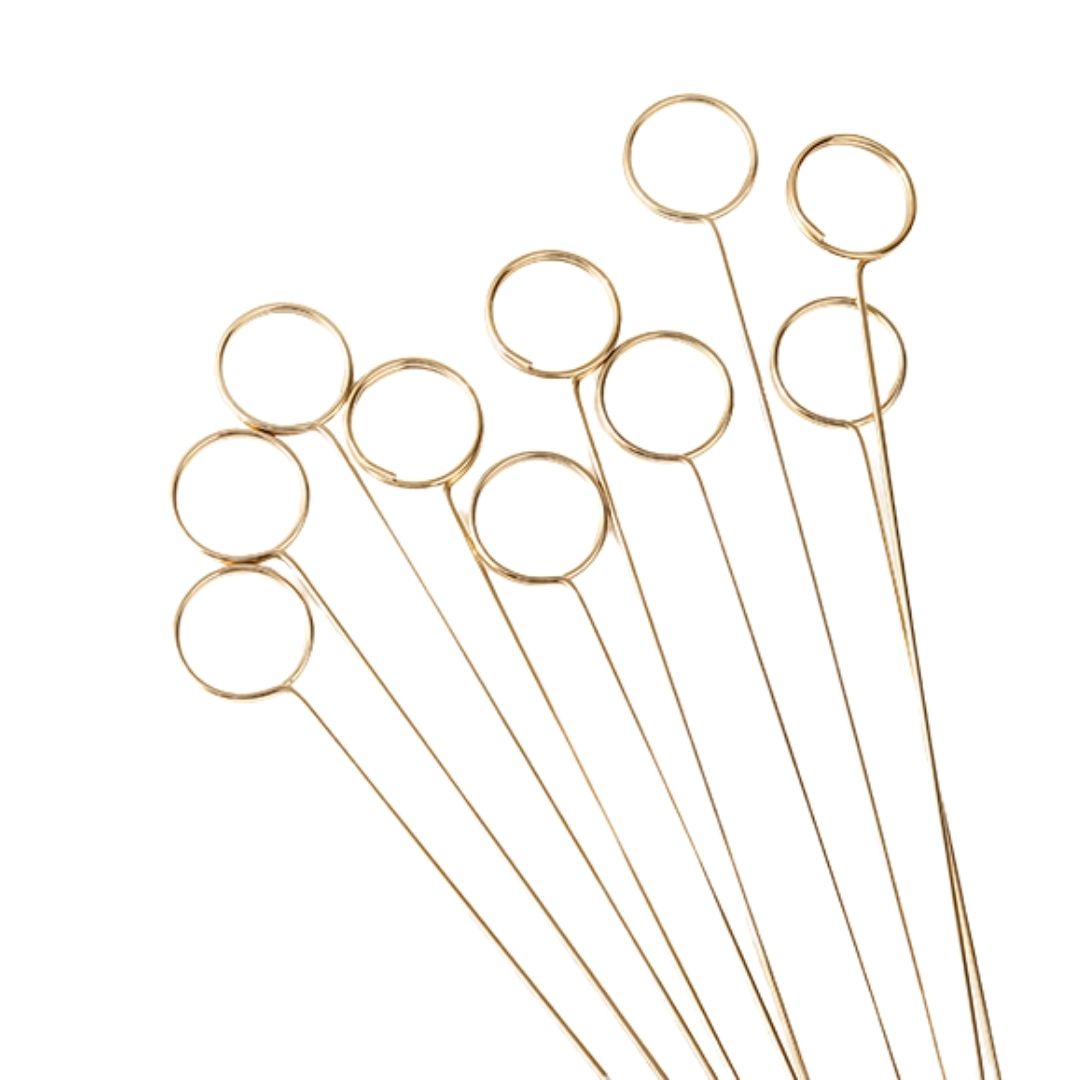 Держатель в букет для открыток/ценников d3.5 h 34см Круг металлический золотой