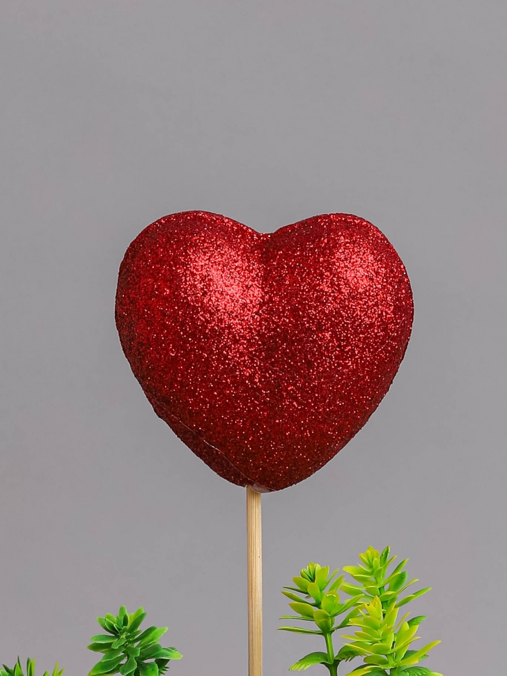 Вставка Сердце с глиттером 6,5*30см красный