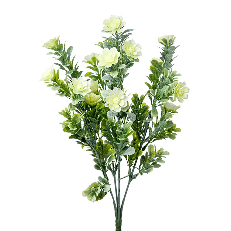 Зелень искусственная с цветами h34см зеленый/белый