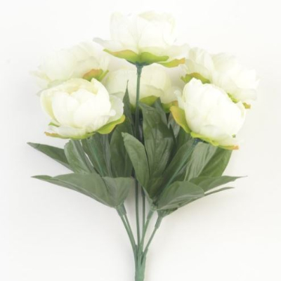 Пион в букете, искусственная, 6 голов, h30см, белый