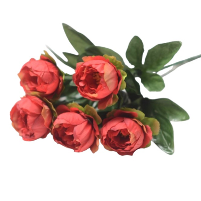 Пион в букете, искусственная, 6 голов, h30см, красный
