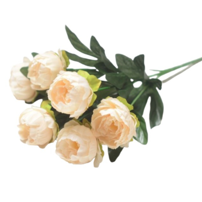 Пион в букете, искусственная, 6 голов, h30см, кремовый