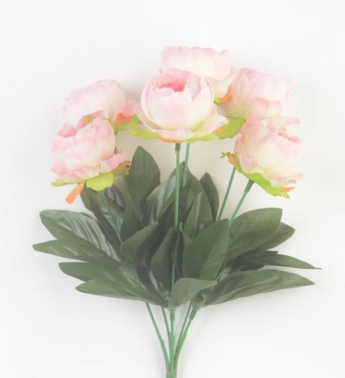 Пион в букете, искусственная, 6 голов, h30см, розовый комбинированный