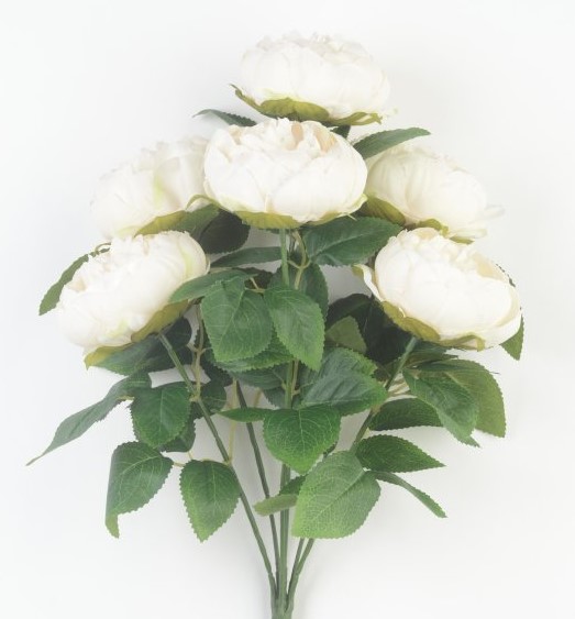 Пион в букете, искусственная, 6 голов, h47см, белый