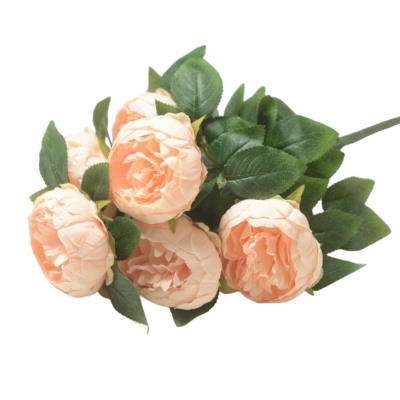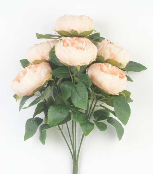 Пион в букете, искусственная, 6 голов, h47см, персиковый