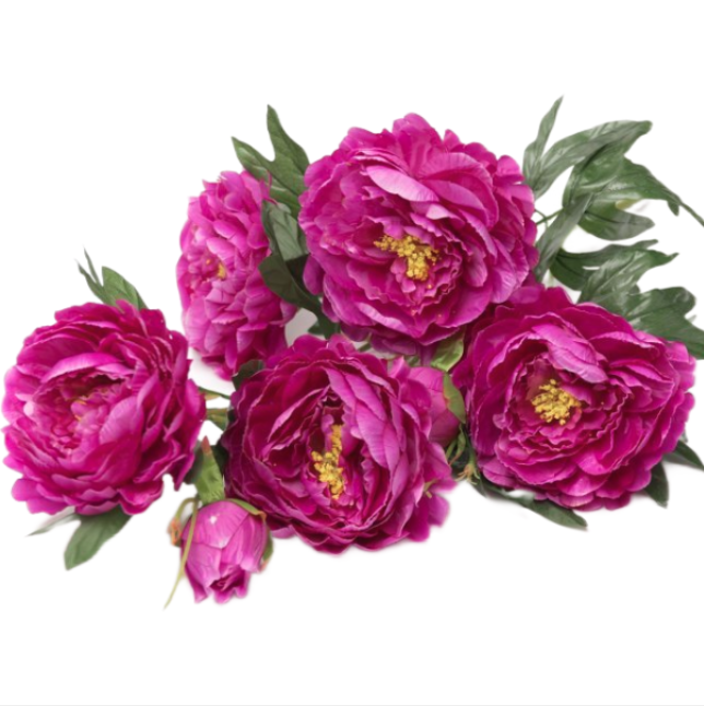 Пион в букете, искусственный, 8 голов, h68см, сиреневый
