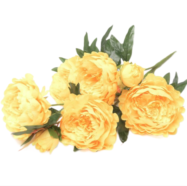 Пион в букете, искусственный, 8 голов, h68см, желтый