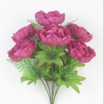 Пионы в букете, искусственные, 7 голов, h52см, темно-сиреневый