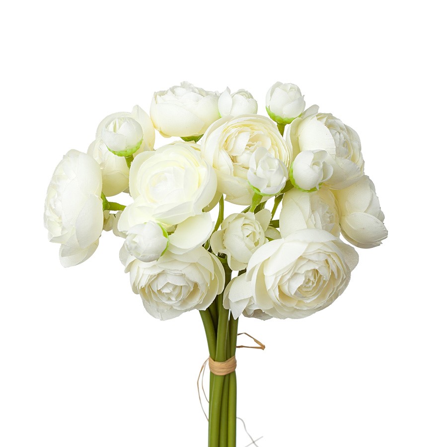Ранункулюс в букете, искусственная, h24см, белый