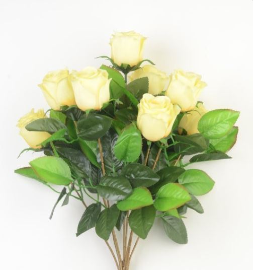 Роза  в букете искусственная 9голов h50см лимонный