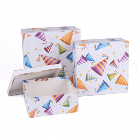 Коробка квадрат Праздничные колпаки 25*25*12см белый